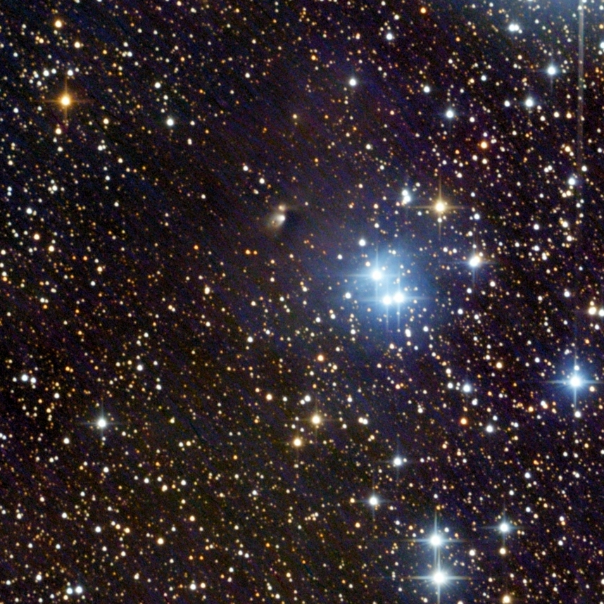 Offener Sternhaufen IC1311 (Cyg) am 22.08.2025, f = 600 mm, QHY294C, IRB-Filter, RGB-Bild, skaliert auf 35% und 70% der Originalauflösung (große Bilder skaliert auf 50% und 70% der Originalauflösung). IC1311 befindet sich in einem extrem sternreichen Gebiet der Milchstraße nur wenige Grad westlich des Sterns Sadr (γ Cyg) am Rand einer ausgedehnten HII-Emissionsregion. Basierend auf numerischen Modellen der Entwicklung der Zustandsgrößen der Sterne des Haufens unter Annahme einer gleichzeitigen Entstehung wurde dessen Alter zu etwa 1.6 Milliarden Jahren bestimmt (Delgado et al., 1994, Astron. J. 108(6), 2193-2202).